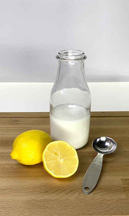 En algunos lugares es difícil encontrar buttermilk o suero de mantequilla, si es así, podemos sustituirlo por una receta casera: necesitaremos leche entera y zumo de limón. Estos son los pasos: