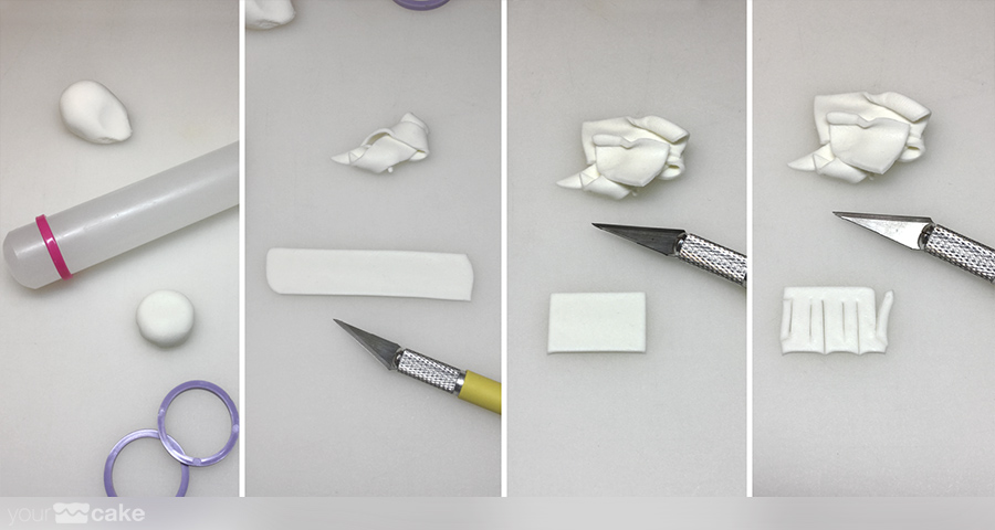 Es recomendable añadir un poco de CMC (Carboximetil Celulosa) al fondant para que endurezcan con mayor rapidez.