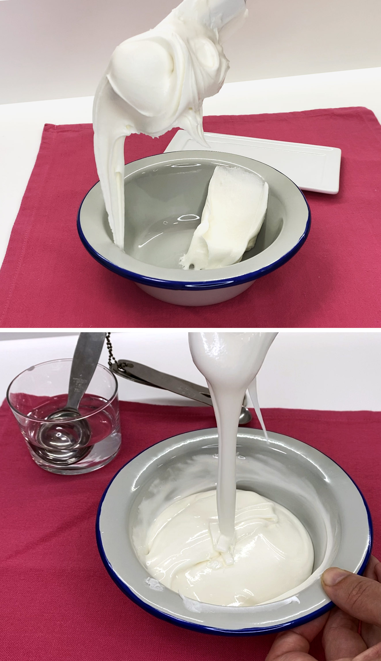 La siguiente receta es para preparar glasa madre con albúmina, a partir de esta, añadiendo agua conseguimos los otros tipos.