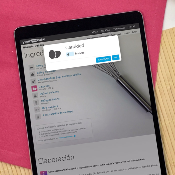Selecciona una receta de YourCake, en ella puedes consular los ingredientes.