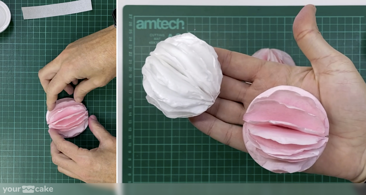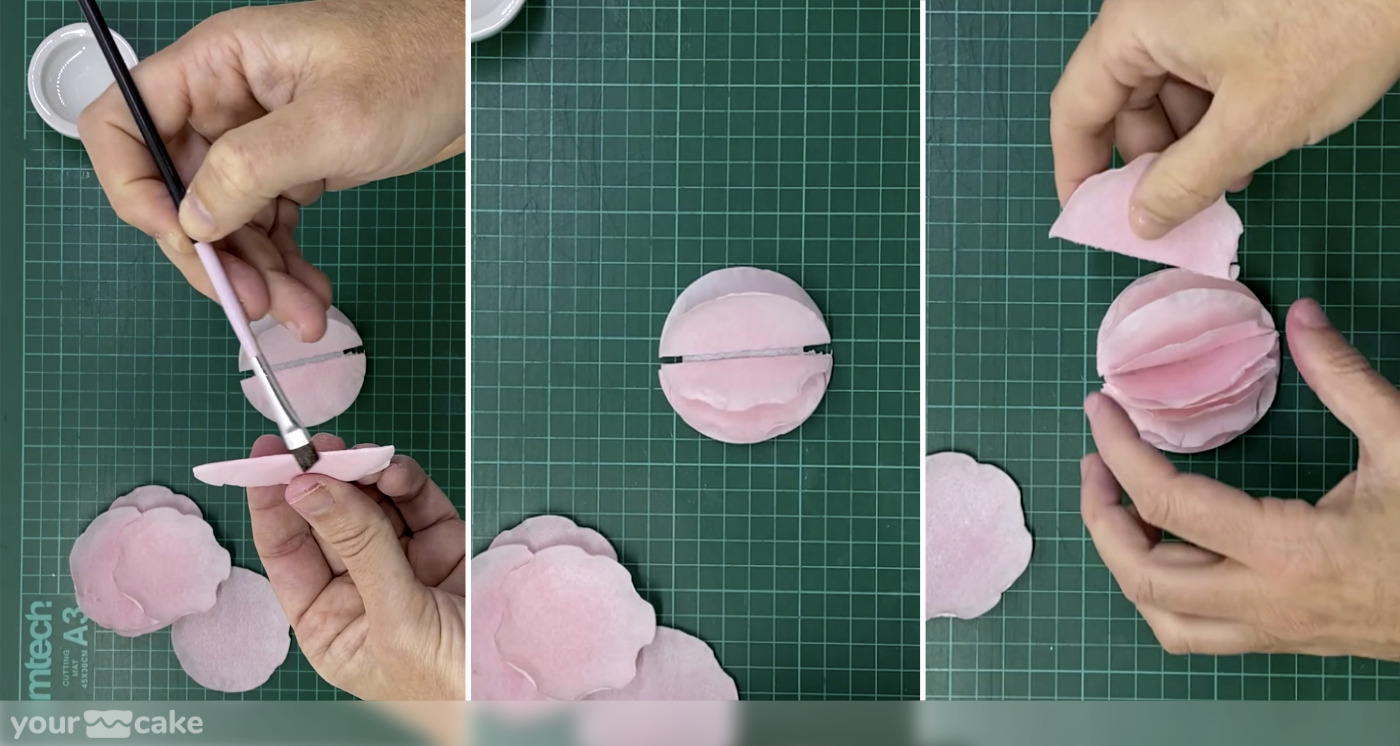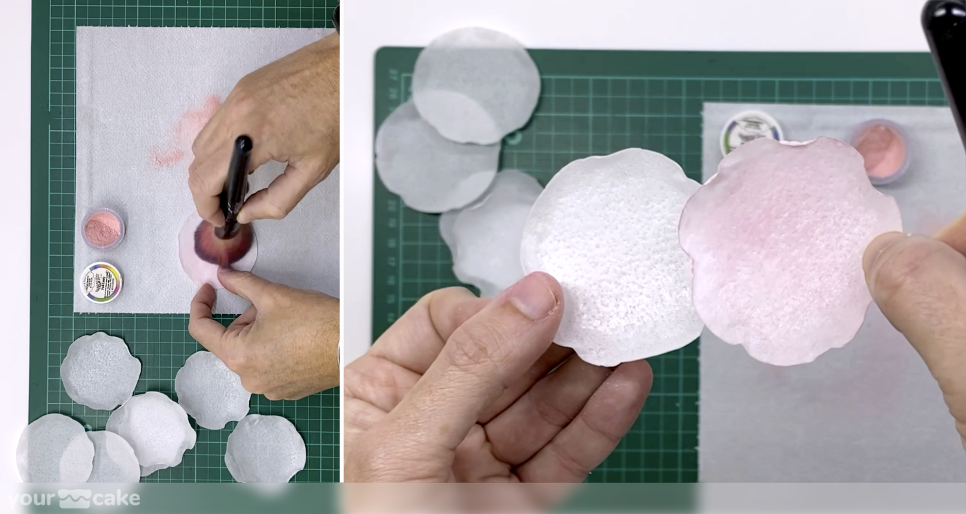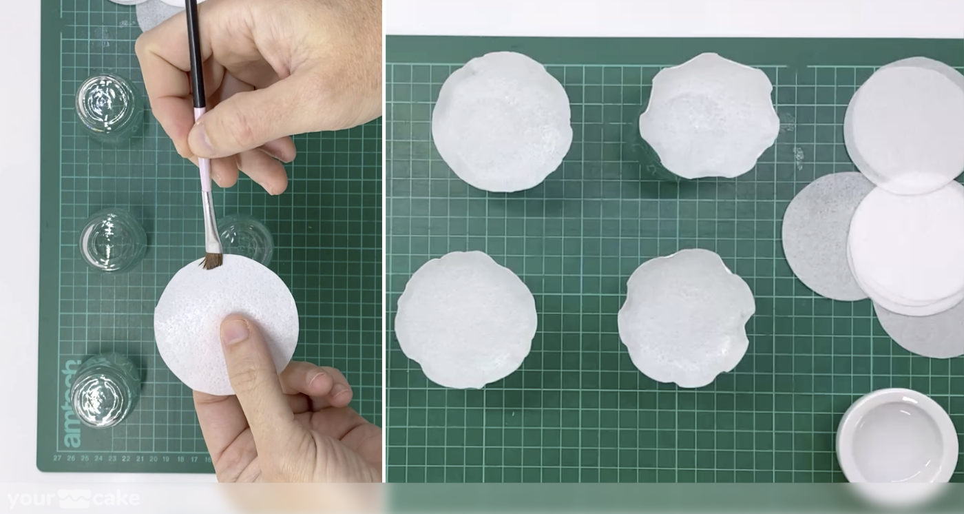 Dejamos secar los círculos sobre una superficie evitando que la zona húmeda toque nada, para que el borde se rice de forma natural.